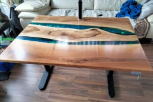 - Continue with the main coating in the same way. Pour the resin-hardener mixture up to 2″ deep. If the area to be poured is small (e.g., 4″x 4″) and the room temperature is low (60°F), you can pour up to 12″ deep at once.