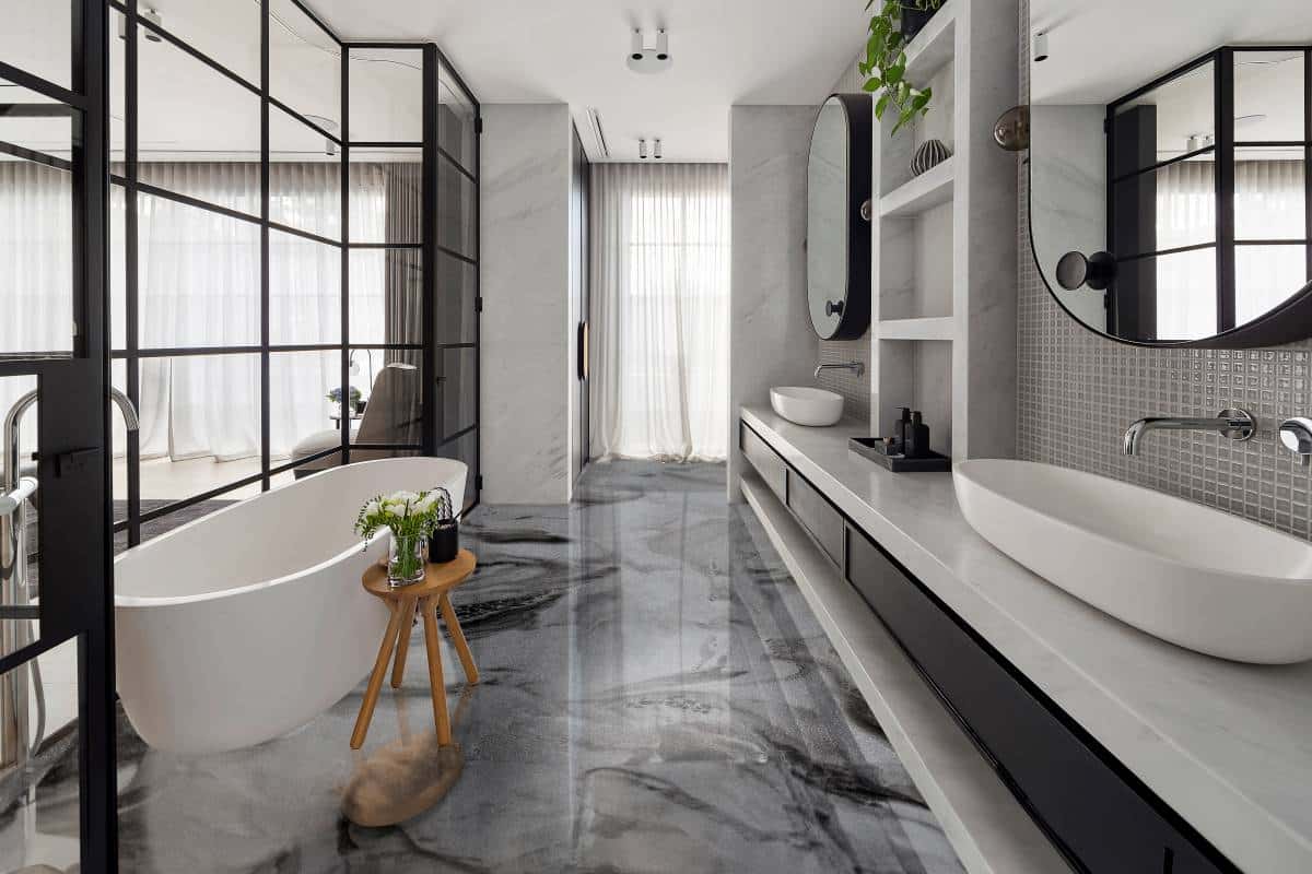 - Apply the material with a squeegee and roller and let it flood over the desired surface.