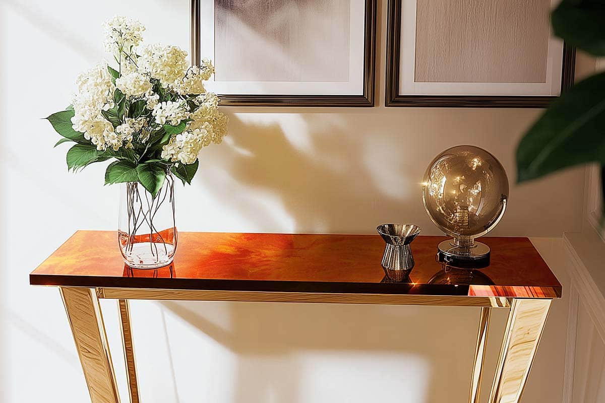 - Add the supplied TERRA ORANGE metallic powder to the resin/hardener mixture.