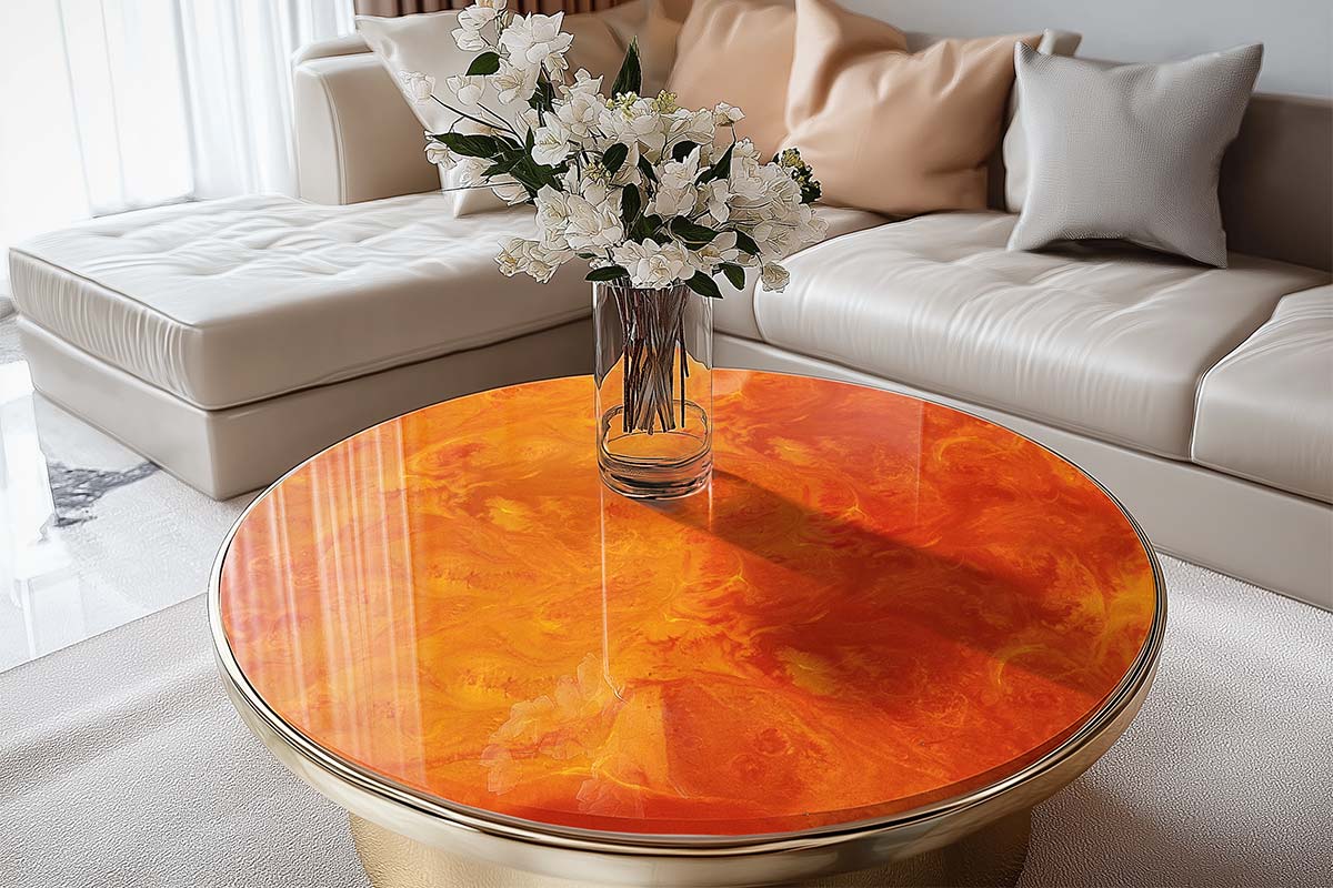 - Plan a quantity of resin and hardener for each colour. We recommend to use 95% of your resin and hardener for the base color TERRA ORANGE, and 5% for the highlight color TRAFFIC RED.